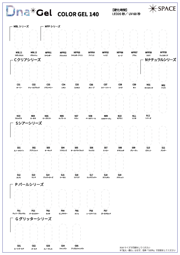 DnaGel カラージェルのチップを貼り付けていただけるカラーチャート用紙を作成しました。 下記URLよりダウンロード可能ですので、ぜひサロンでのカラーチャート作成にご活用ください。