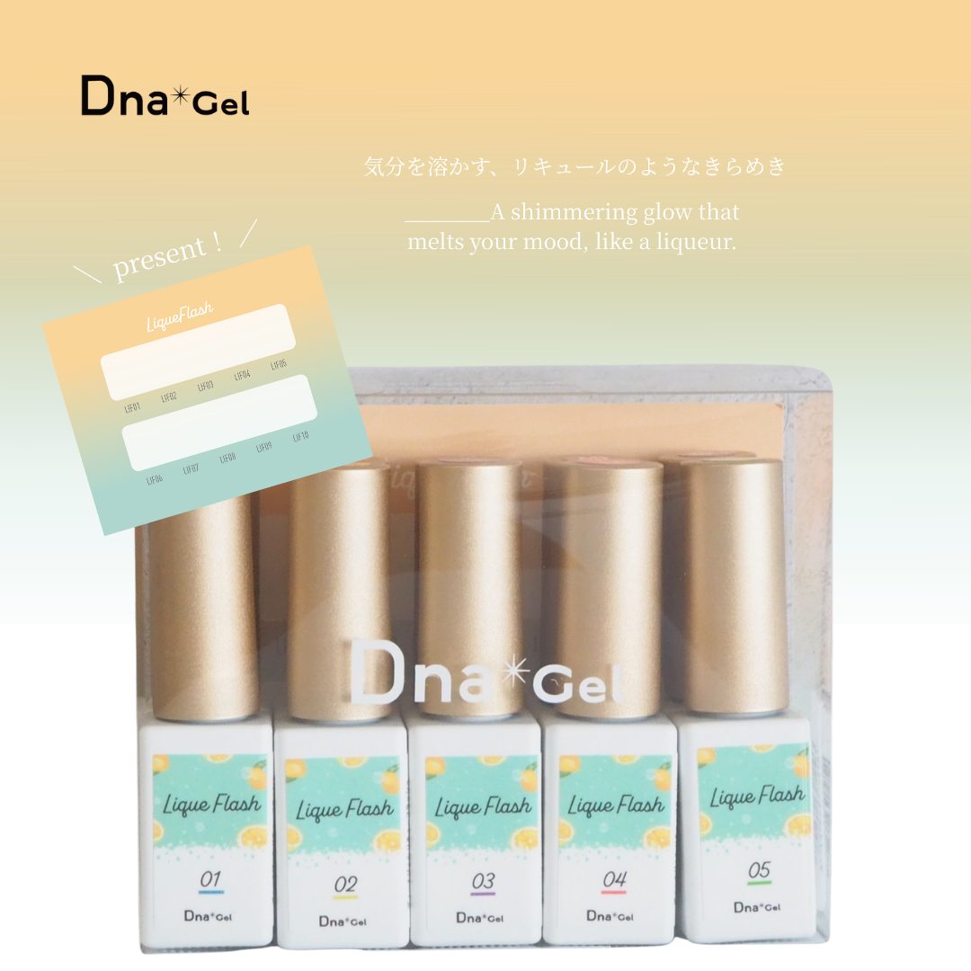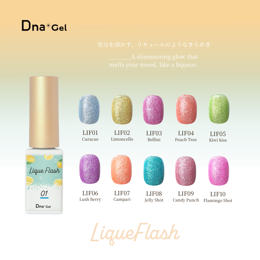 LiqueFlashシリーズ ~気分を溶かす、リキュールのようなきらめき~マグネット入りフラッシュジェル。シリーズ全10色セット。カラーチャート用台紙付き。